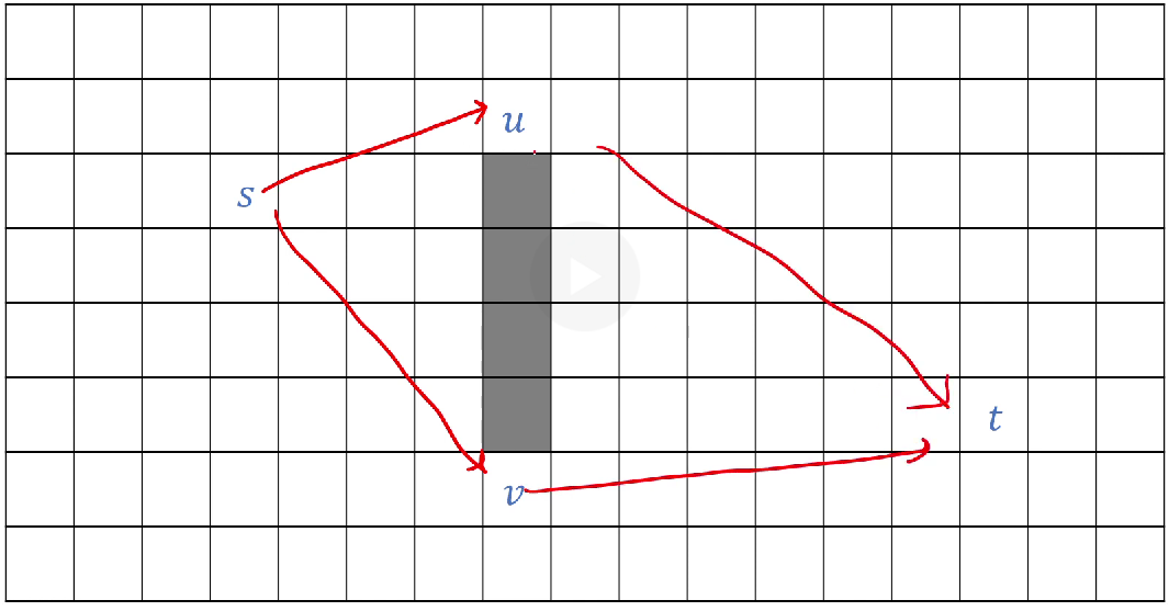 u → t 또는 v → t 로 가는 경로를 잔여거리 h(u), h(v)라 한다.