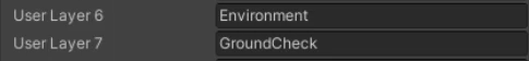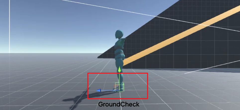 지면은 Environment라는 레이어고, 발이 닿고있는 네모난 부분은 GroundCheck입니다.