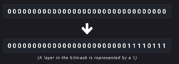 그리고 해당 레이어에 대응하는 비트만 1로 설정된 정수를 만드는것입니다.